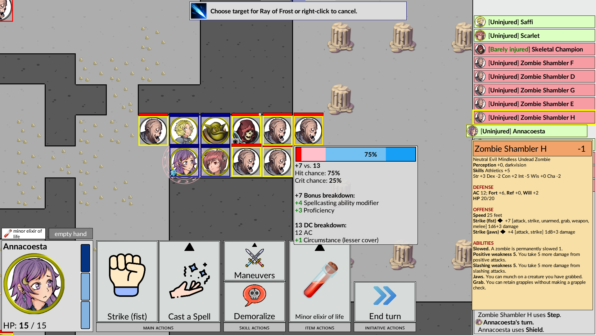 Each turn, you get three actions to spend on moving, attacking, casting spells, taking combat maneuvers, drinking potions and defensive or other actions.